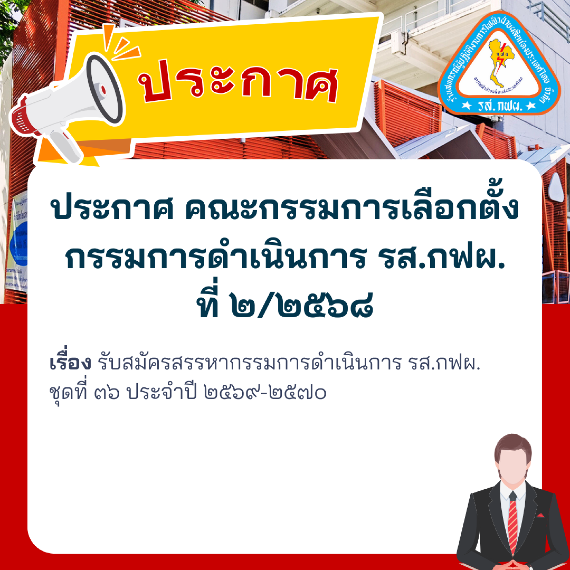ประกาศ คณะกรรมการเลือกตั้งกรรมการดำเนินการ รส.กฟผ. ที่ ๒/๒๕๖๘