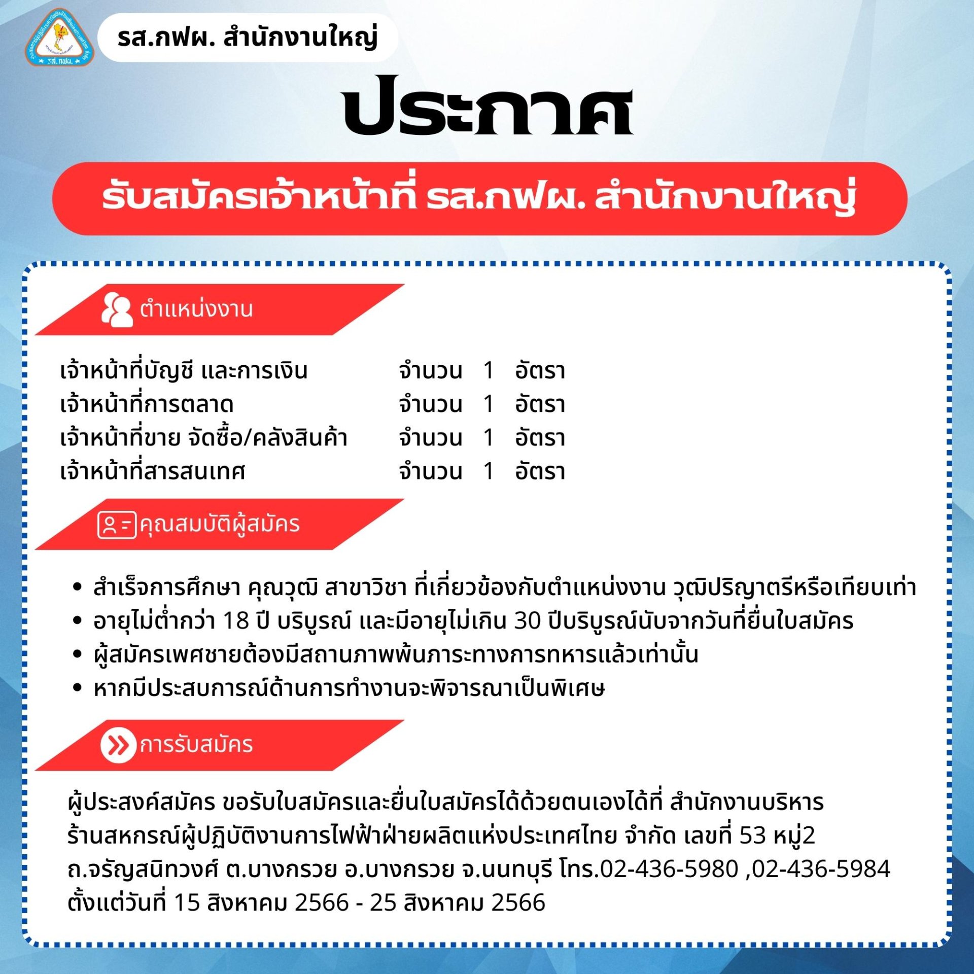 เรื่อง การรับสมัครคัดเลือกบุคคลเพื่อบรรจุเป็นเจ้าหน้าที่ รส.กฟผ.