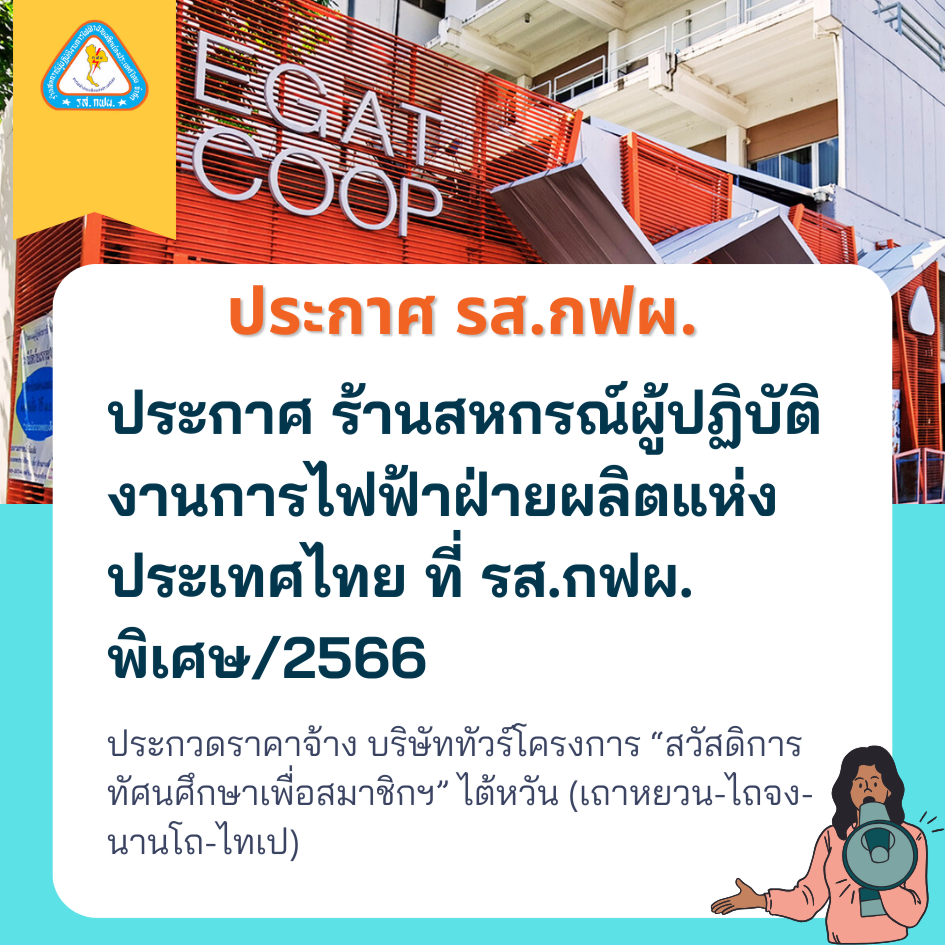 ประกาศ ร้านสหกรณ์ผู้ปฏิบัติงานการไฟฟ้าฝ่ายผลิตแห่งประเทศไทย ที่ รส.กฟผ. พิเศษ/2566
