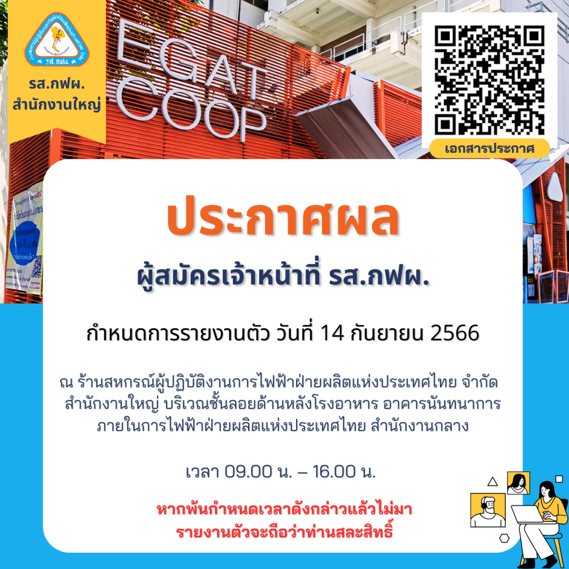ประกาศ ร้านสหกรณ์ผู้ปฏิบัติงานการไฟฟ้าฝ่ายผลิตแห่งประเทศไทย จำกัด