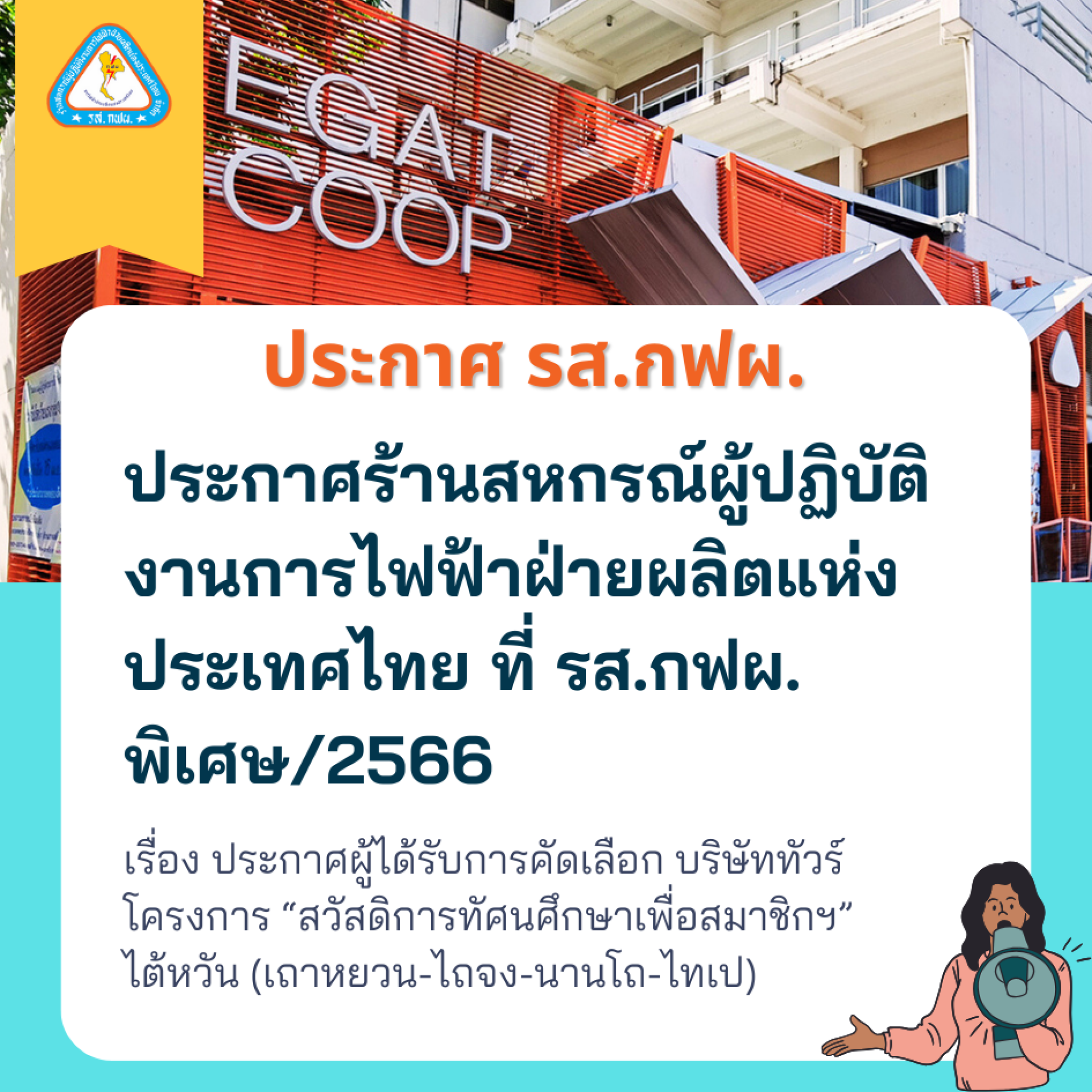ประกาศร้านสหกรณ์ผู้ปฏิบัติงานการไฟฟ้าฝ่ายผลิตแห่งประเทศไทย ที่ รส.กฟผ. พิเศษ/2566