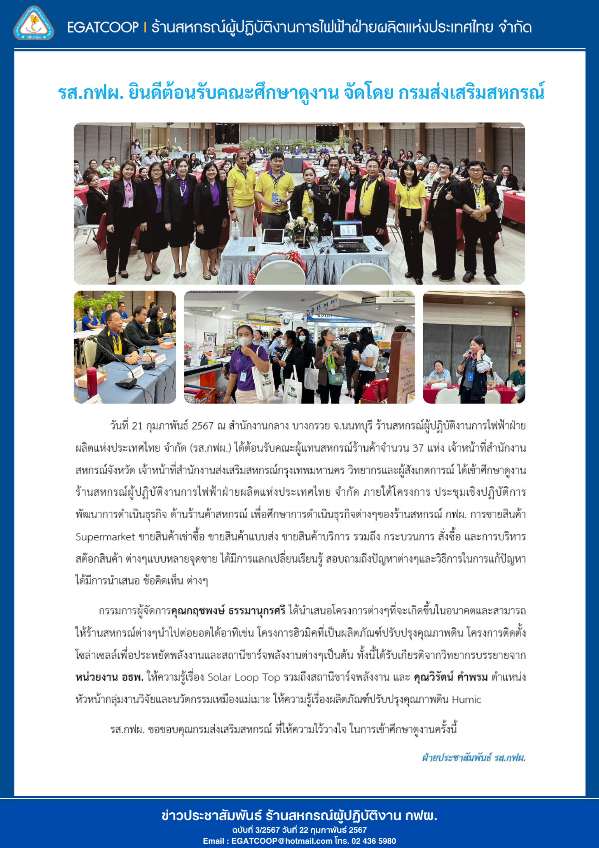 รส.กฟผ. ยินดีต้อนรับคณะศึกษาดูงาน จัดโดย กรมส่งเสริมสหกรณ์
