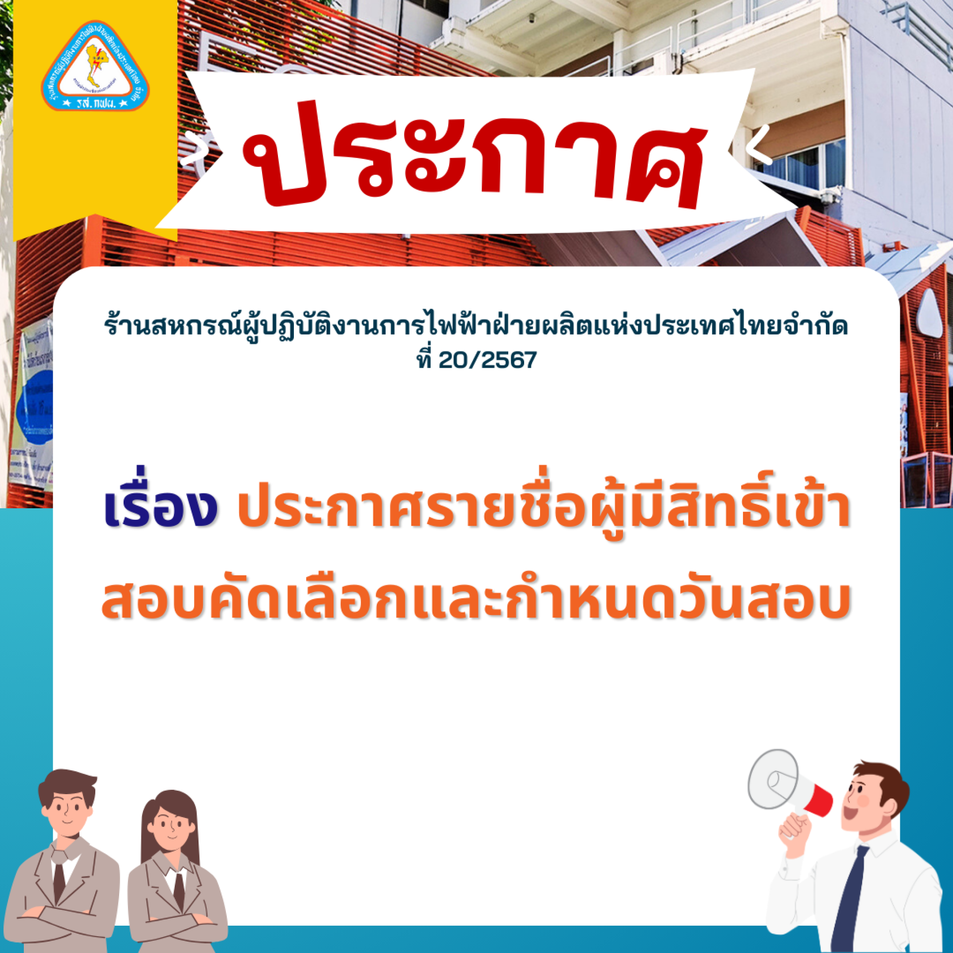 ประกาศ ร้านสหกรณ์ผู้ปฏิบัติงานการไฟฟ้าฝ่ายผลิตแห่งประเทศไทย จำกัด ที่ 20/2567